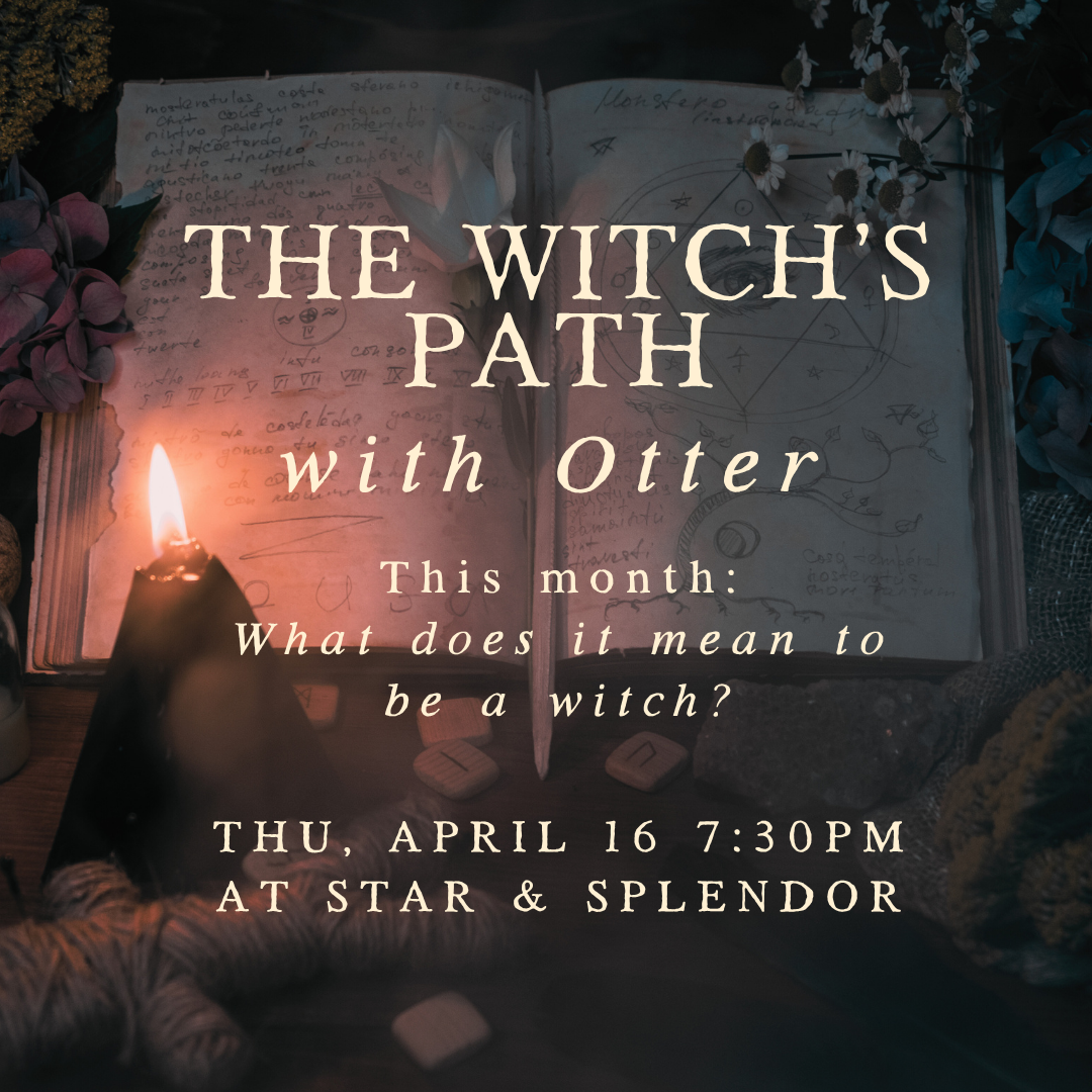 What does it mean to be a witch? This month, Otter will ask this question, and you’ll explore it together. She will speak about what draws people to the path, and the various types of witches and ways they practice, as well as what you can expect moving forward with these sessions. There will be prompts and space for you to ask questions in this open-minded, no judgment zone. Those working solo, new to the craft, or questioning whether it is right for them are welcome!