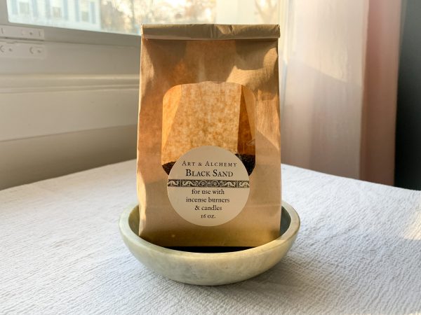 Fire safe black silica sand provides a buffer between your burner and the charcoal that is used to burn resin and herbal incense. It protects the burner from resin build up and heat, and it prevents some heat transfer to furniture beneath the burner. And it’s beautiful!